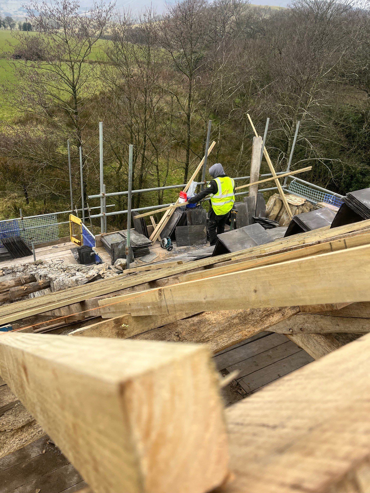 Fair Oak Farm is a traditional stone-built property located in the Forest of Bowland AONB, with historic significance and architectural character typical of the region. Our team was appointed to carry out sensitive conservation works to the farmhouse and associated outbuildings, ensuring structural integrity while preserving original features.