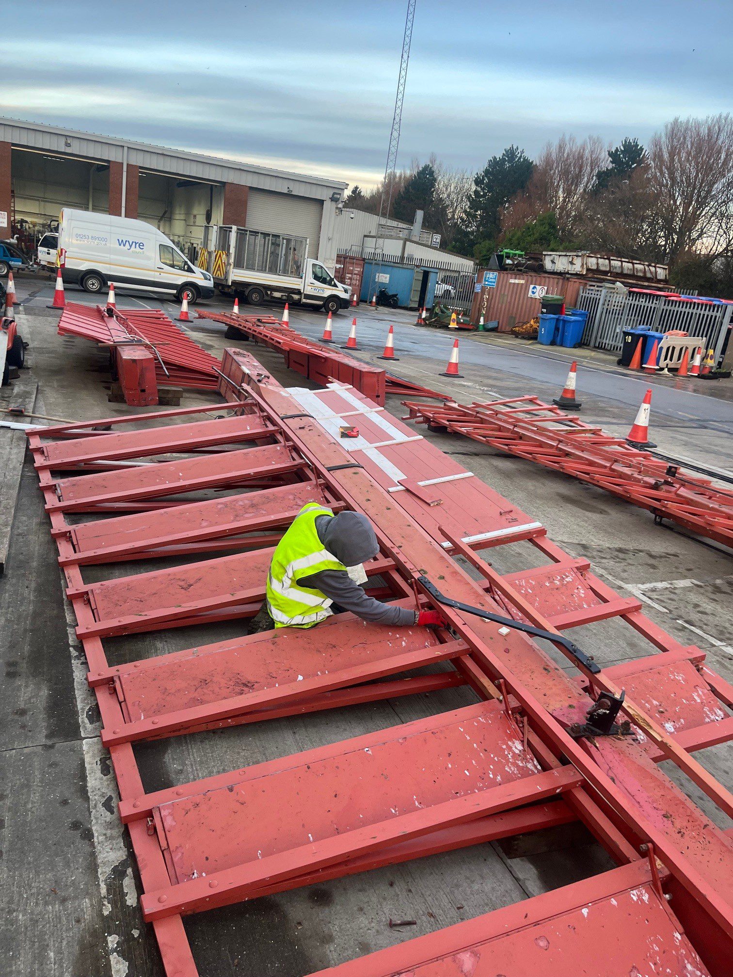 Removal of sails to facilitate the replacement of the weather beam , refurbish sails off site and reinstall on site