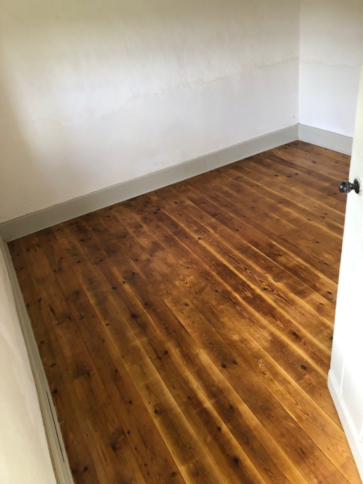Floor repairs: flagstones reset, new joists and insulation, reinstated boards and Osmo finish.